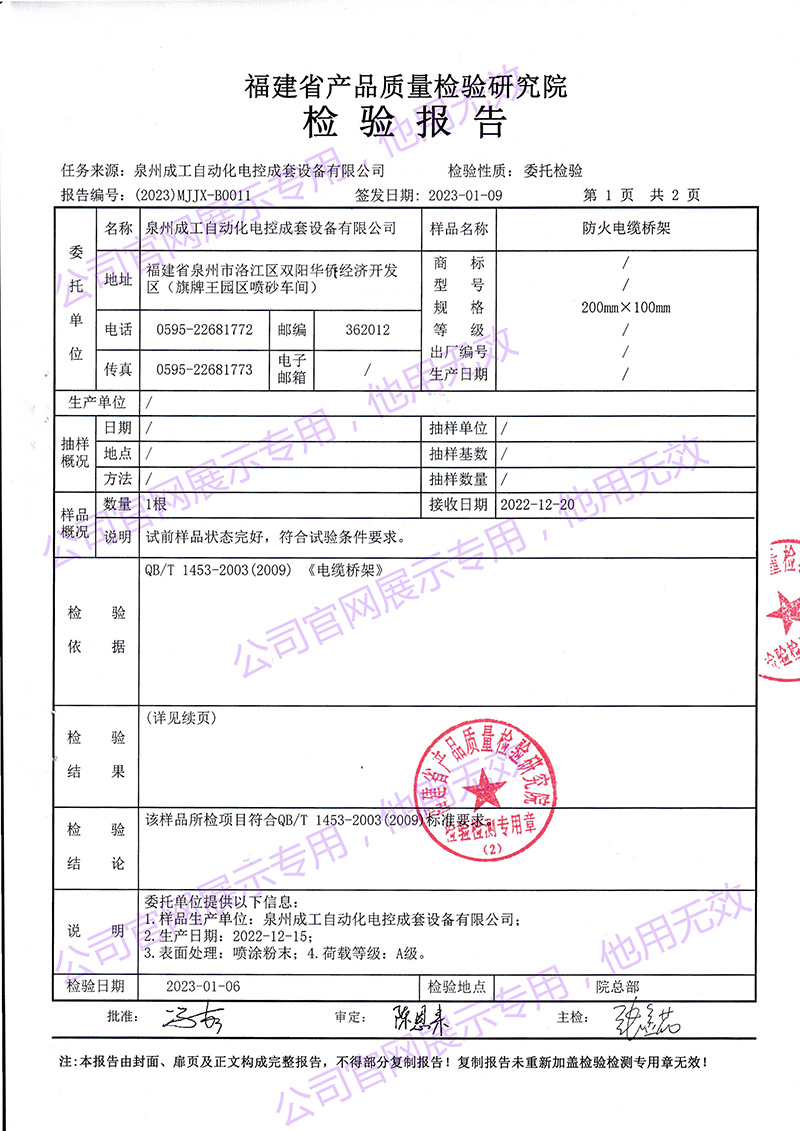 防火電纜橋架檢驗(yàn)報(bào)告