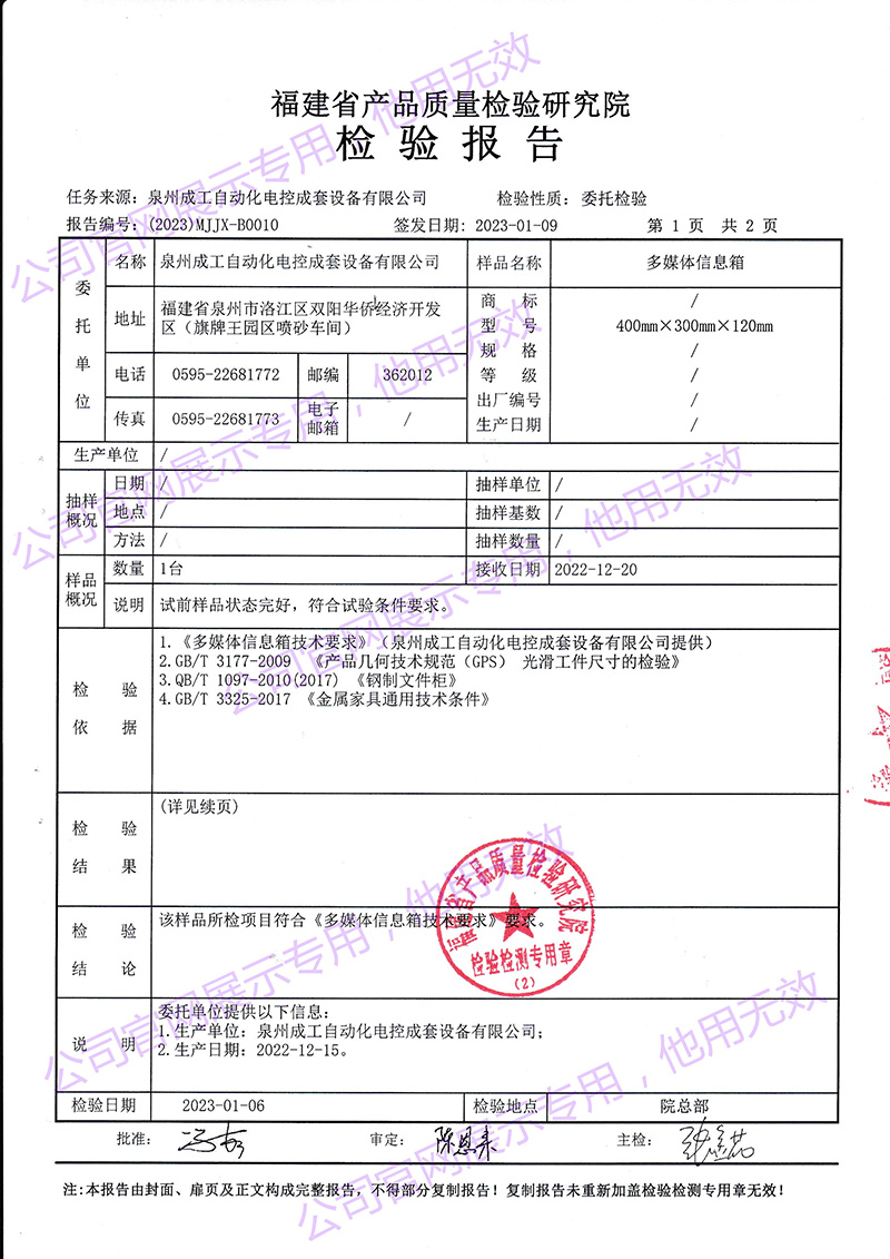 XMJ計(jì)量電表箱安全型式試驗(yàn)報(bào)告 -
