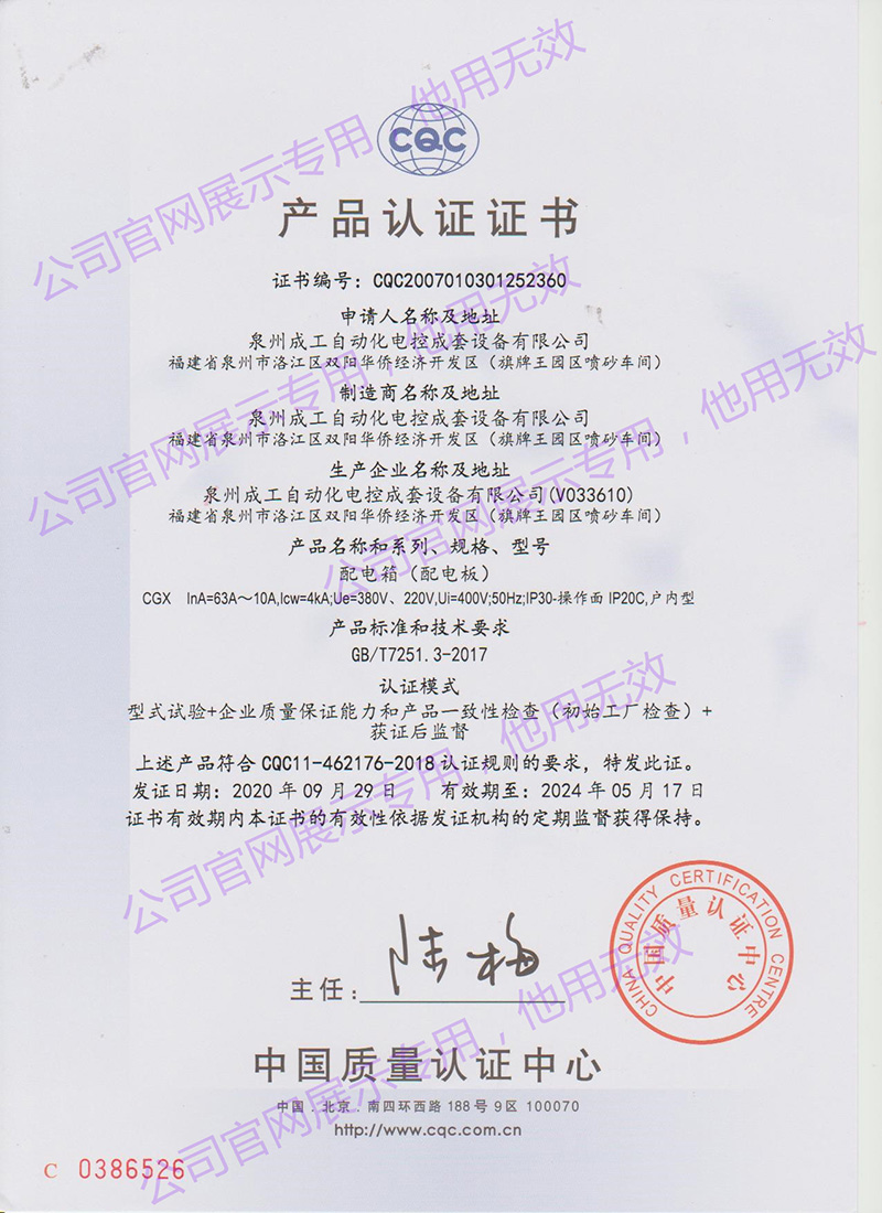 CGX配電箱產(chǎn)品認(rèn)證證書 -