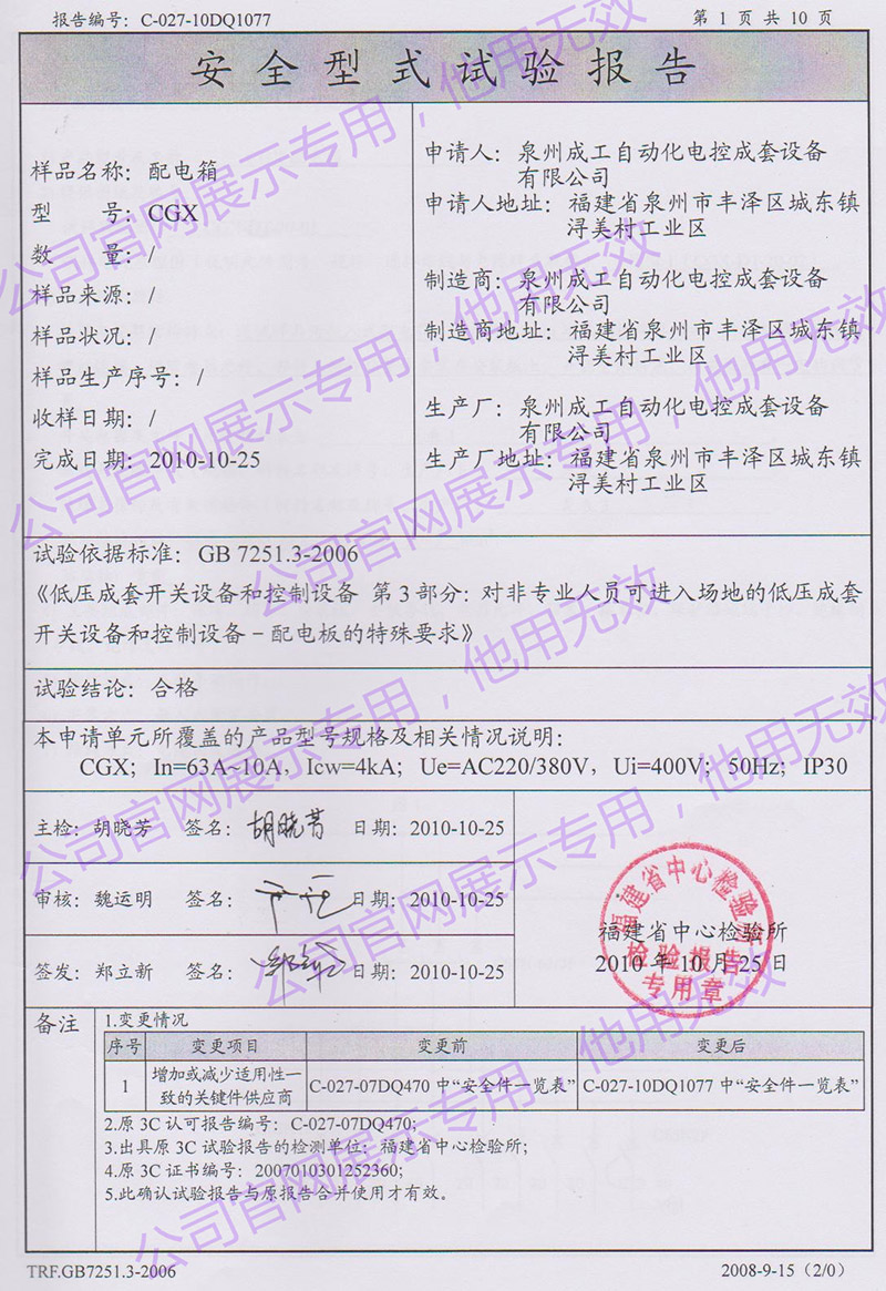CGX配電箱安全型式試驗(yàn)報(bào)告 -