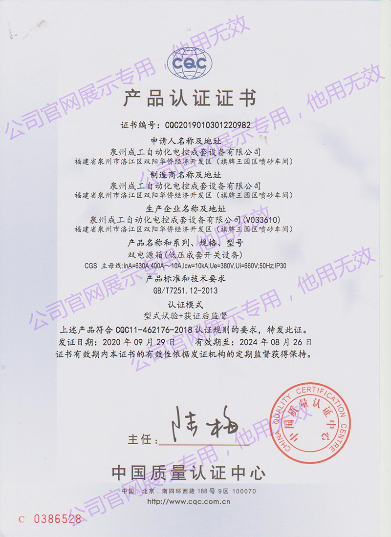 CGS雙電源箱產(chǎn)品認(rèn)證證書 -