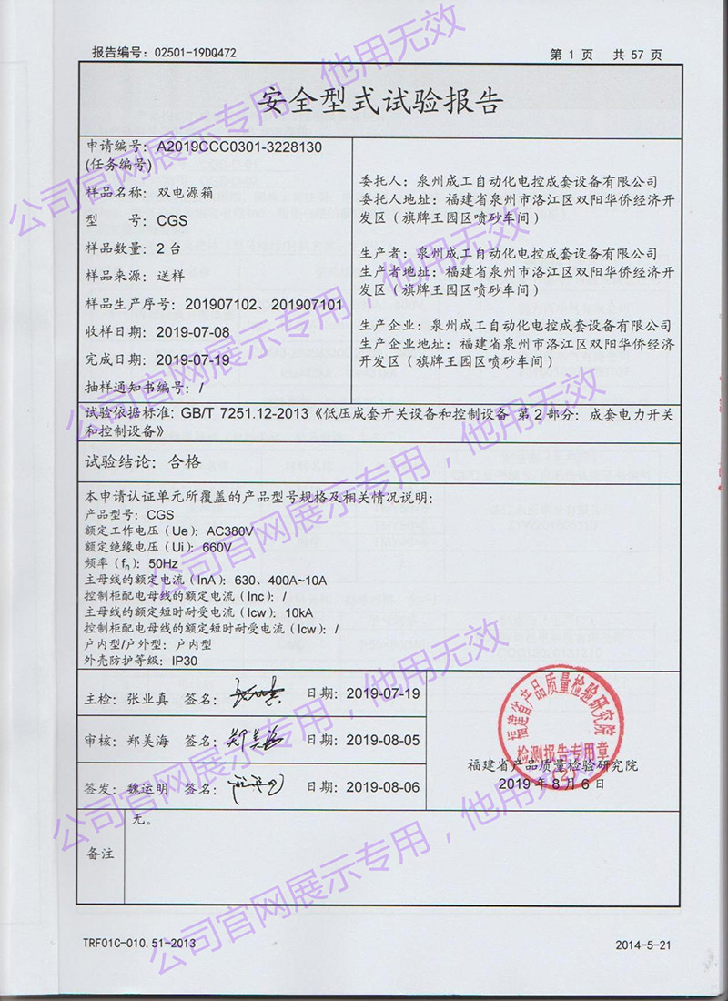 CGS雙電源箱安全型式試驗(yàn)報(bào)告 -